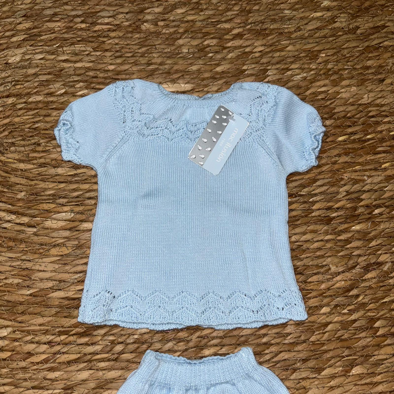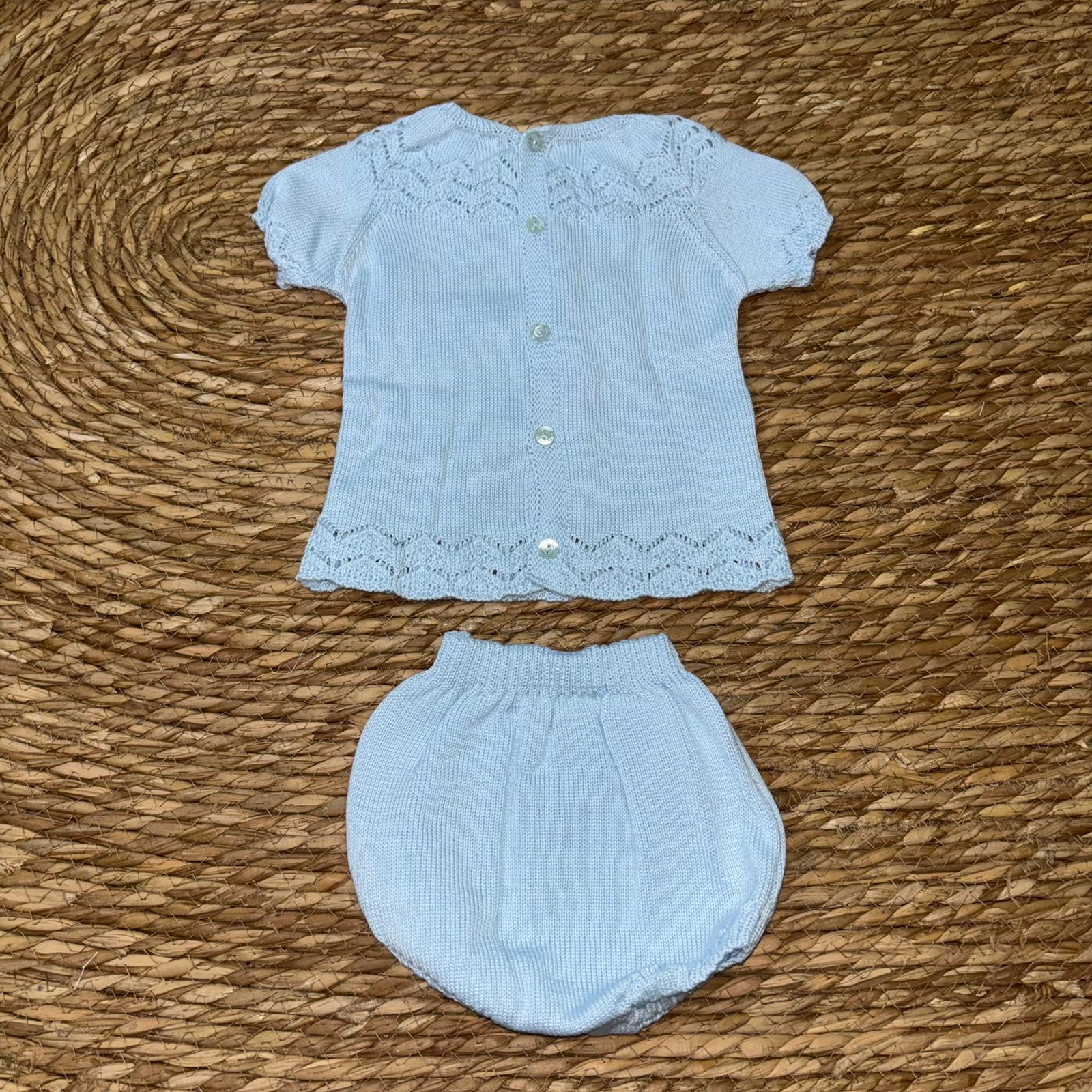 Conjunto 7221. Conjunto celeste entero Chaleco abotonado en la espalda
